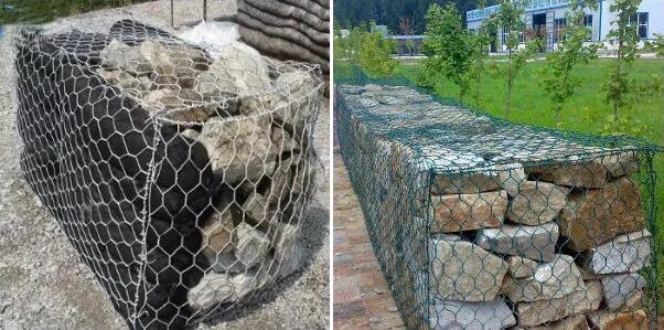 दीवार को बनाए रखने के लिए जस्ती हेक्सागोनल गेबियन बॉक्स